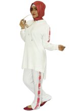 This white coord + Hoody is made with thick cotton jersey contrasting floral embroidered patch alongside arms and trouser. Slits on the side of the shirt providing more comfort and style.